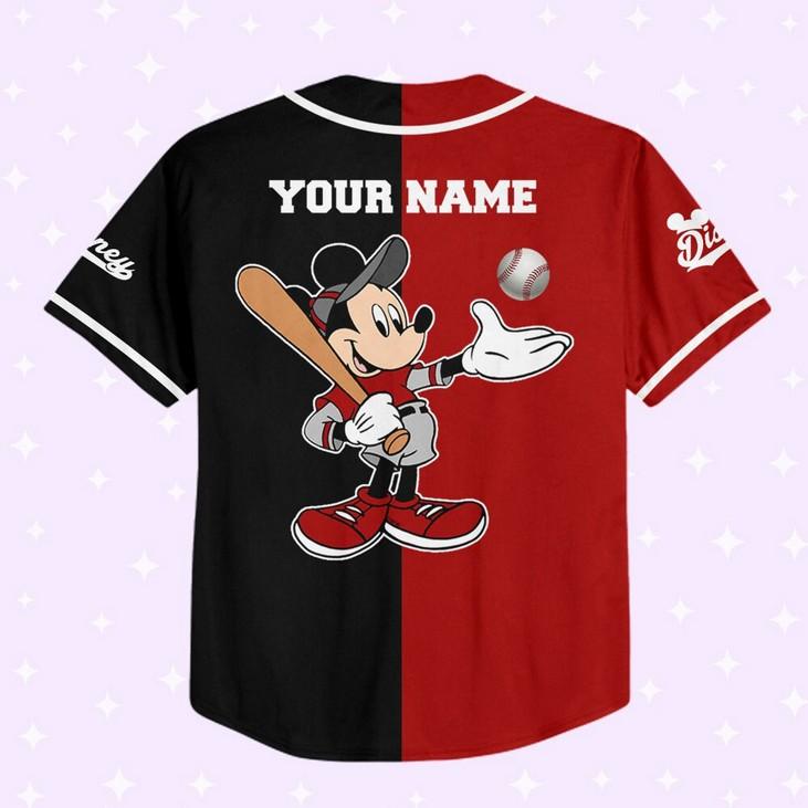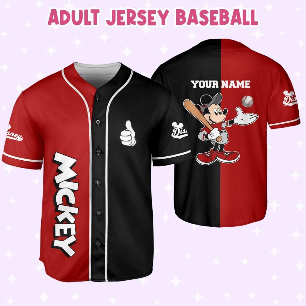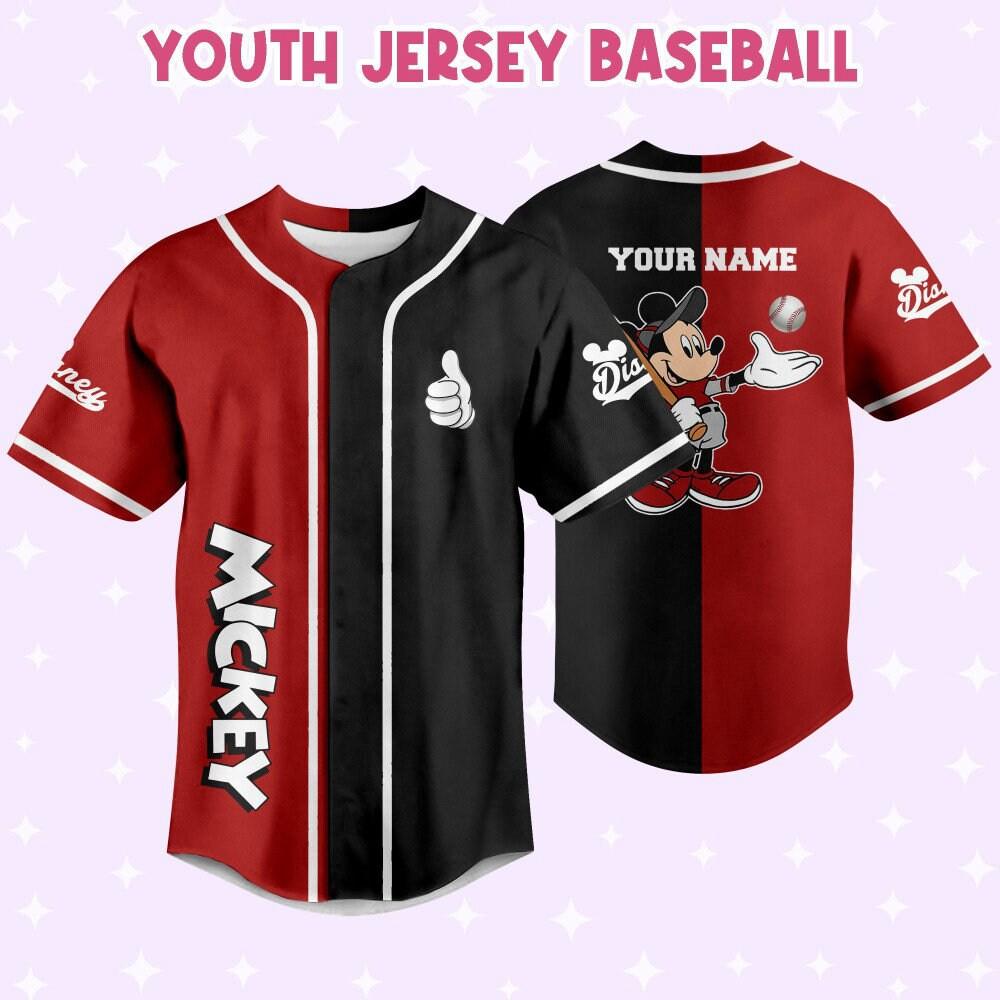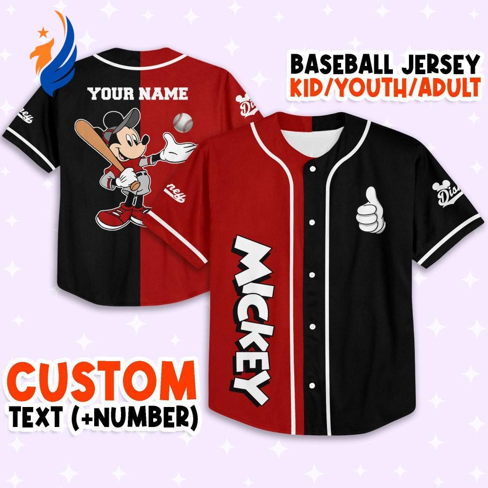 Custom Mickey Baseball Jersey - Personalize Red Black Outfit for Kids Youth & Adults - 3D Disney Gift for Fans