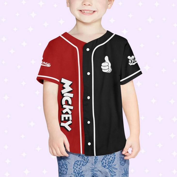 The Personalize Mickey Baseball Red Black jersey is the perfect outfit for die-hard Disney fans of all ages! Made from highquality materials, this custom jersey features a 3D design of Mickey Mouse playing baseball. Whether you're a kid, youth, or adult, this jersey is available in various sizes to fit everyone. It's an adorable gift that will surely bring a smile to any Disney fan's face. Stand out from the crowd and show off your love for Mickey with this unique and stylish baseball jersey. Get yours today and experience the joy of being a true Disney fan!