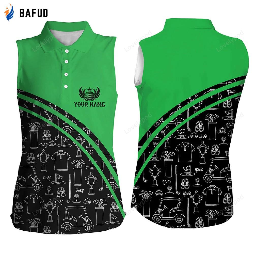 Womens sleeveless polo shirt custom black pattern short sleeve golf shirts, golf gift for her
