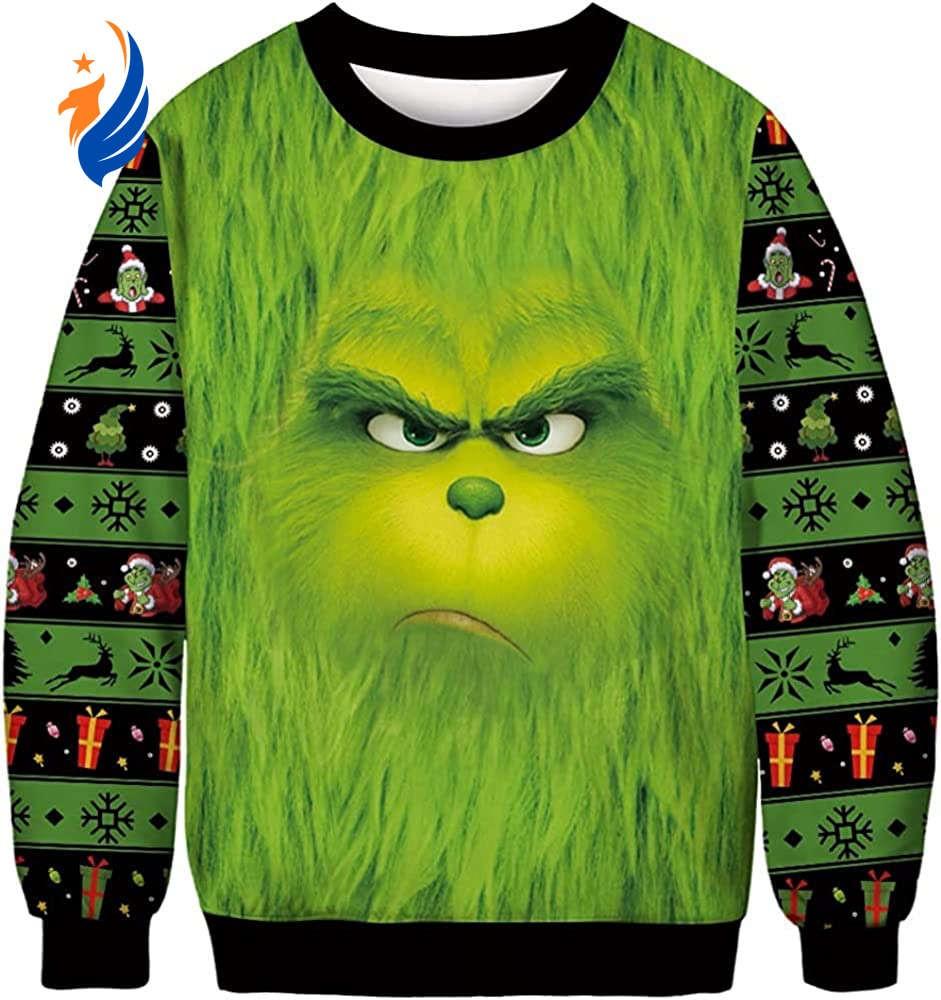 Introducing the Grinch Face Ugly Christmas Sweater, the perfect attire to make a bold statement this holiday season. Made with premium quality materials, this sweater combines comfort and style. The eye-catching Grinch face design adds a touch of whimsy, making you stand out in any crowd. Perfect for parties, gatherings, or simply spreading some festive cheer, this sweater is sure to bring a smile to everyone's face. With its excellent craftsmanship and attention to detail, this sweater offers both durability and long-lasting wear. Embrace your inner Grinch and celebrate the season with a touch of mischief. Get the Grinch Face Ugly Christmas Sweater today and be the life of the party! The Grinch Face Ugly Christmas Sweater information: