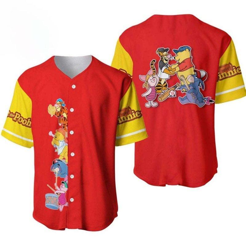With its vibrant colors and detailed graphics, this baseball jersey brings the magic of Winnie The Pooh to life. It's a great way to show off your love for these lovable characters and make a statement wherever you go.