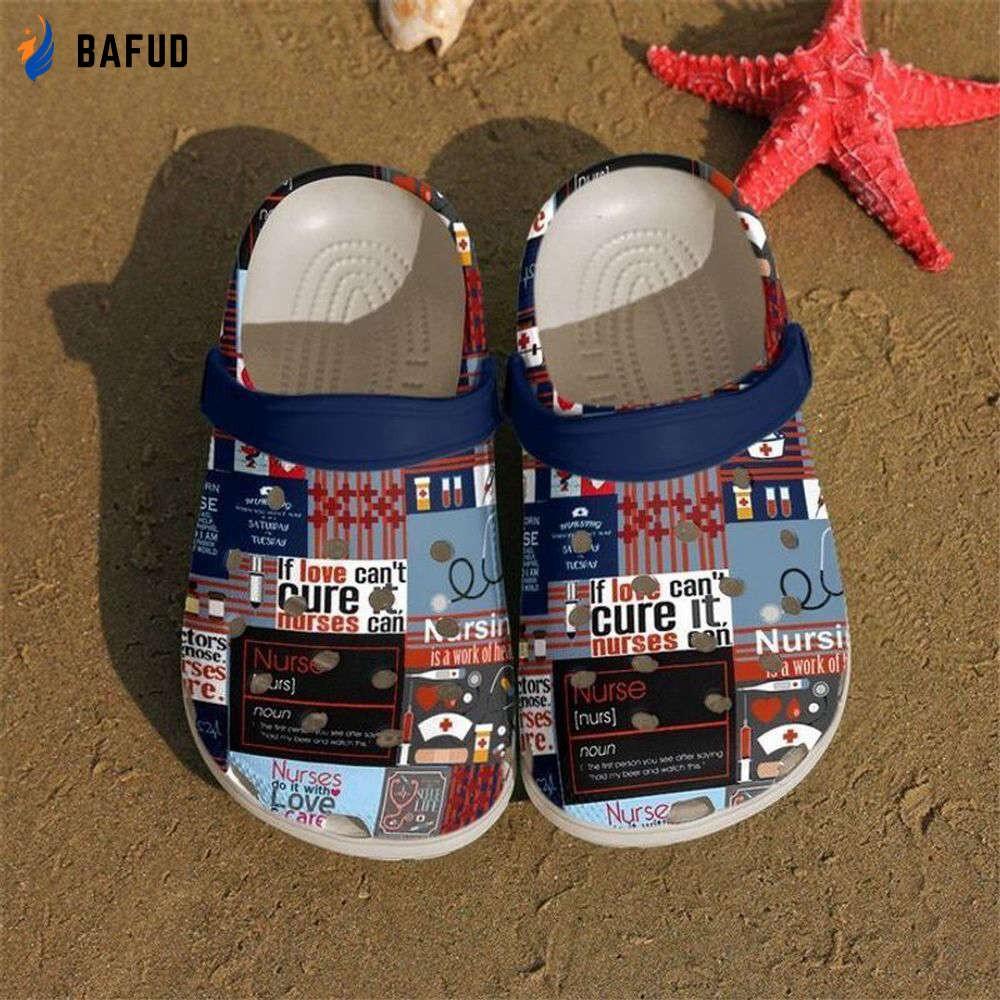 Featuring the unique "Nurse Love Care If Love Can't Cure Nurses Can" design, these shoes proudly display the dedication and passion nurses have for their profession. The vibrant colors and intricate patterns add a touch of personality to any outfit, making these shoes a fashionable statement piece.