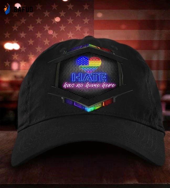 Introducing our Hate Has No Home Here Hat Gay Pride Rainbow Classic Cap! Show your support for LGBTQ rights and spread a powerful message of love and acceptance with this patriotic and meaningful accessory. Designed with a vibrant rainbow flag and the inspiring "Hate Has No Home Here" slogan, this hat is a perfect way to demonstrate your solidarity.