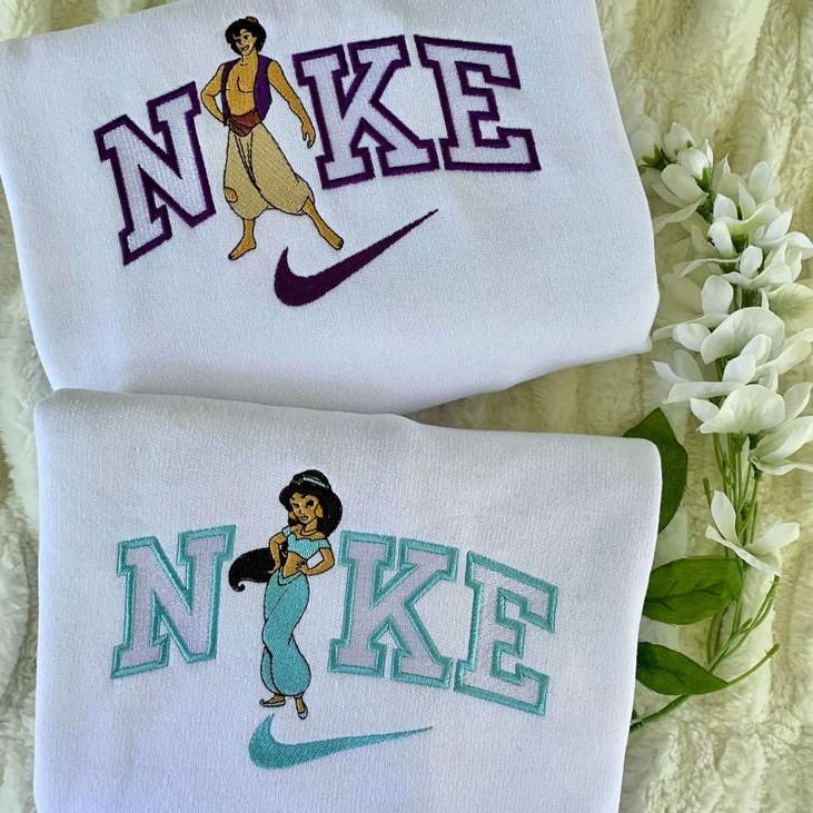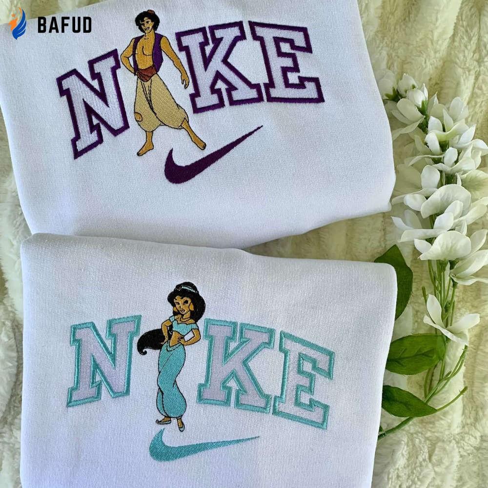 Step into a whole new world with our Jasmine and Aladdin Matching Embroidered Crewneck T-Shirt and Sweatshirt. Designed for both men and women, these shirts feature exquisite embroidery that captures the enchanting charm of the beloved characters. Made from premium quality materials, they offer unrivaled comfort and durability, ensuring they will be your go-to choice for any occasion. Whether you're exploring the bustling streets of Agrabah or simply lounging at home, our matching shirts will transport you to a magical realm. With their versatile design, they can be effortlessly styled to create a variety of looks, making them a wardrobe staple for any Disney fan. Showcasing your love for this timeless tale, our Jasmine and Aladdin Matching Embroidered Crewneck T-Shirt and Sweatshirt provide both style and substance. Don't miss out on this opportunity to add a touch of Disney magic to your wardrobe. Order yours today and embark on an adventure like no other!