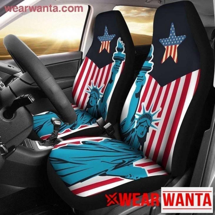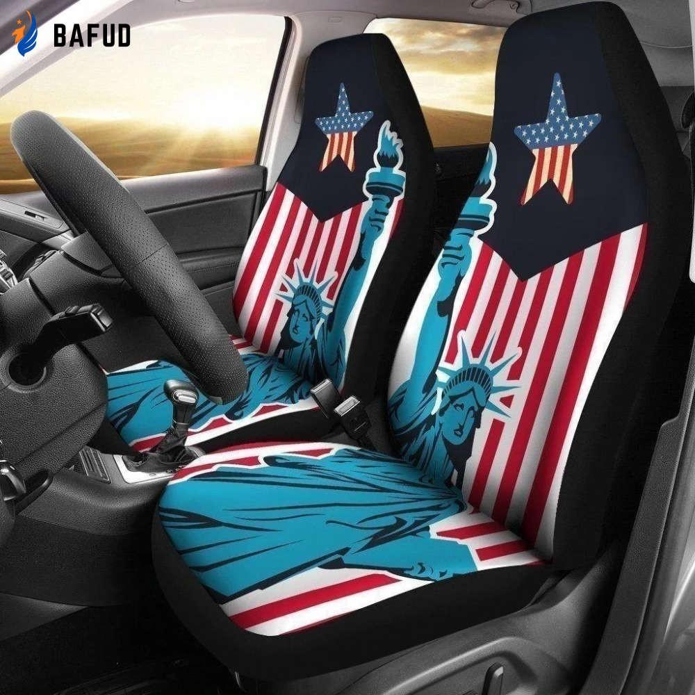 Introducing our American Flag Car Seat Covers Custom Statue of Liberty Car Decoration, a true embodiment of patriotism and style for your beloved vehicle. Made from high-quality materials, these seat covers are designed to fit snugly on your car seats, providing both protection and a striking visual appeal.