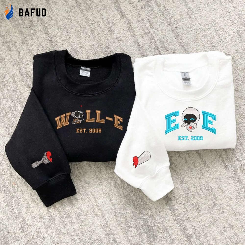 Introducing our Walle Eve Couple Embroidered Sweater, the perfect addition to your wardrobe! Crafted with love and attention to detail, these cartoon sweatshirts are not only trendy but also offer a unique couple shirt experience. The vintage design and crewneck style exude a timeless charm, making it a standout piece for any occasion. Show your love and appreciation with this Valentine gift that brings warmth and joy. With its comfortable fit and high-quality fabric, this sweater offers both style and coziness for you and your loved one. Embrace the joy of being a couple with our trending Walle Eve Couple Embroidered Sweater!