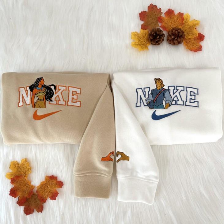 Embroidered Crewneck T-Shirt and Sweatshirt! Designed for men and women, this cozy sweatshirt is perfect for couples who want to showcase their love. Made with high-quality materials, it offers comfort and durability. The embroidered design of Pocahontas and John Smith adds a unique touch to the sweatshirt, making it a standout piece. Whether you're looking for a gift for your partner or a matching outfit for a special occasion, this sweatshirt is sure to impress. With its stylish design and unmatched quality, it offers exceptional value to our customers. Embrace your love story with our Pocahontas And John Smith Matching Couple Sweatshirt!