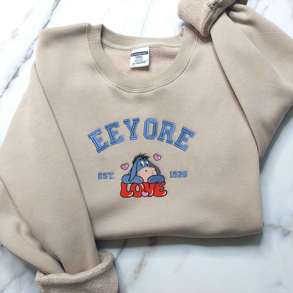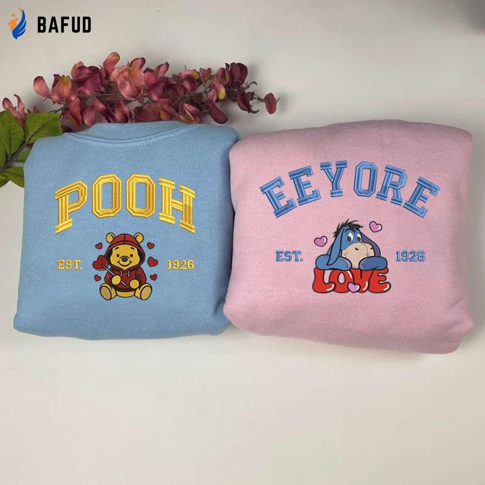 Pooh & Eeyore Embroidered Sweatshirt: Cute Winniethe-Pooh Cartoon Couple Shirts Trending Crewneck for Valentine Gift