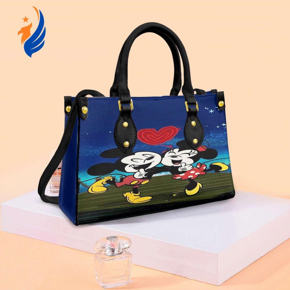 Lover Fashion Lady Handbag! This adorable handbag is perfect for Disney enthusiasts and fashion lovers alike. Made from highquality materials, it features an eye-catching design of Mickey and Minnie sharing a sweet kiss.