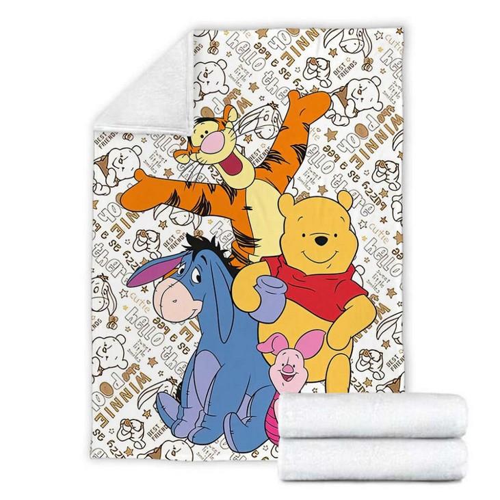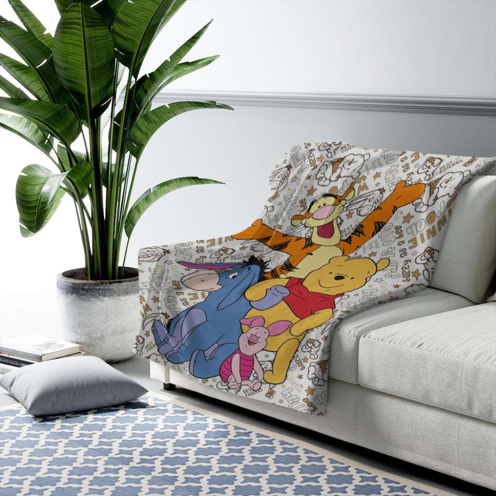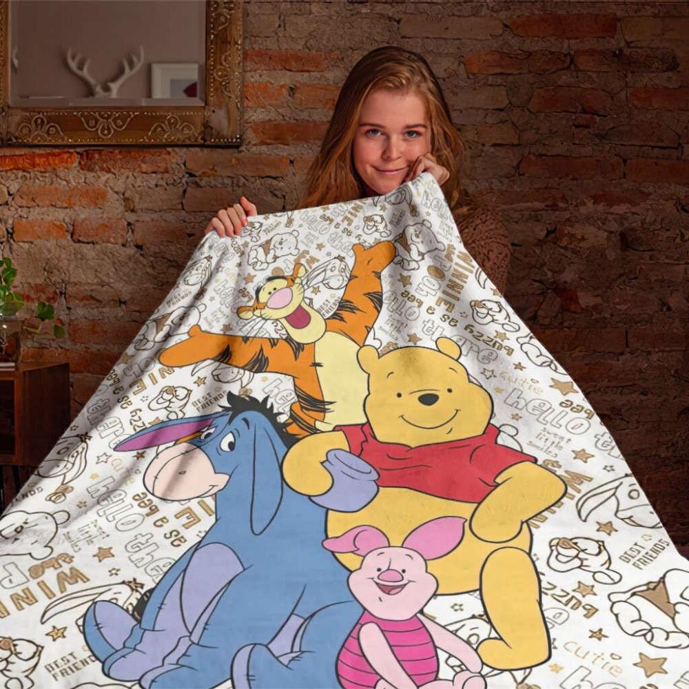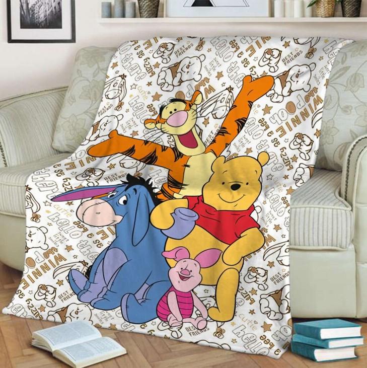 Disney Winnie The Pooh Fleece Mink Blanket, Cartoon Pooh Bear Blanket, Custom Winnie The Pooh Blanket, Tigger Piglet Eeyore Blanket