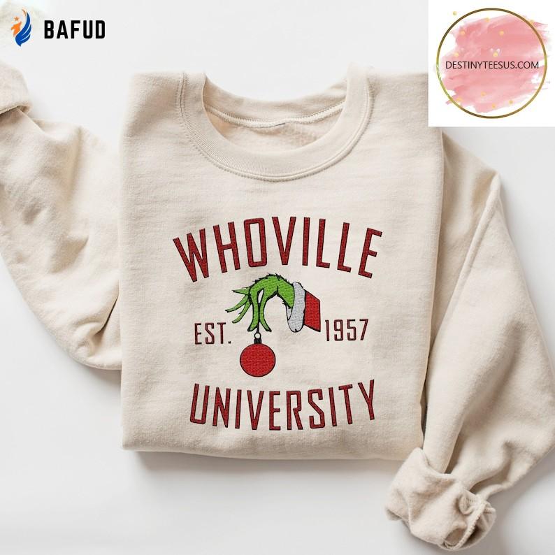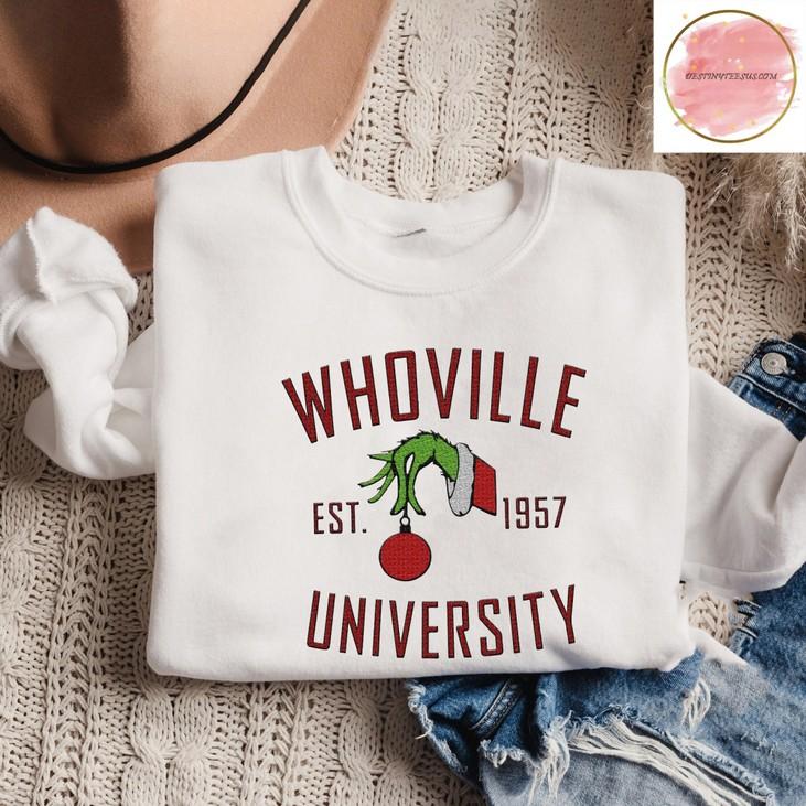 Don't miss out on this limited edition Whoville University Embroidered Crewneck Sweatshirt. Order yours today and embrace the Whoville spirit in style!