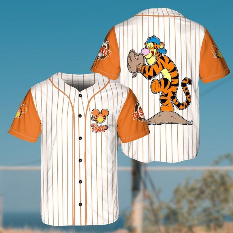 Tigger The Pitcher Winnie The Pooh Disney Cartoon Graphics All Over Print 3D Pinstripe Baseball Jersey