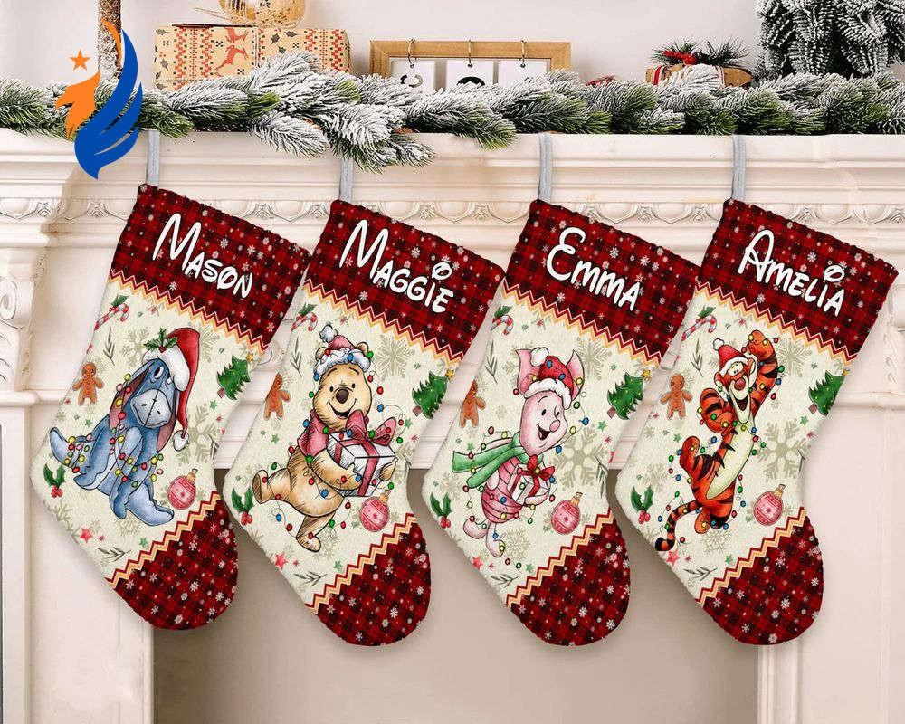 Introducing our Personalized Winnie Pooh Stocking, featuring Pooh and Friends, exclusively from Disneyland. This festive stocking is the perfect addition to your Christmas decor, capturing the whimsy and charm of the beloved characters. Crafted with meticulous attention to detail, it ensures durability and longevity for years to come. The beautifully embroidered names of your loved ones make it a truly unique keepsake. Hang it by your fireplace, and let the magic of Pooh and Friends fill your home this holiday season. Bring joy and excitement to your little ones as they discover their personalized treats and surprises. Delight in the smiles and create unforgettable memories with this enchanting stocking, bringing the true spirit of Christmas to life. Cherish the happiness and warmth it brings, year after year. Make this Christmas extra special with our Personalized Winnie Pooh Stocking, an exceptional gift that brings joy to the whole family.