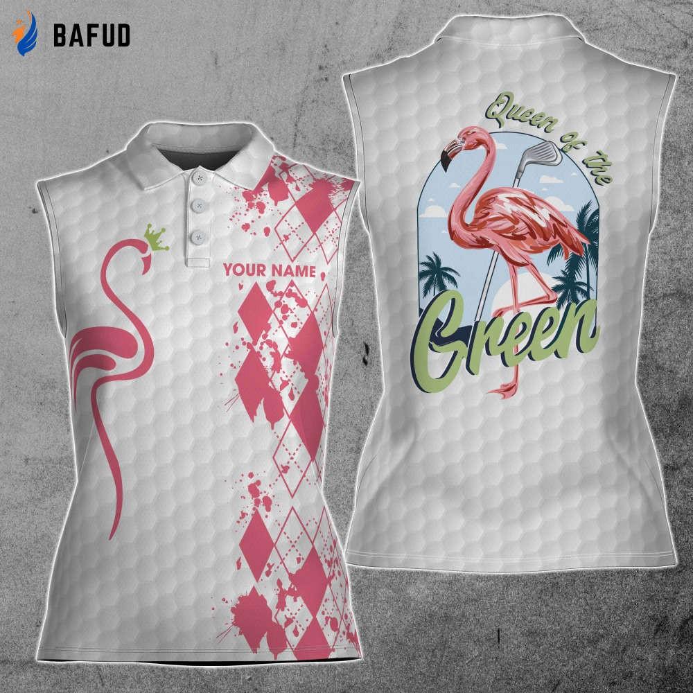 Introducing our Custom Name Queen Of The Green Flamingo Queen Of Golf Women Sleeveless Polo, available in sizes XS-4XL. Designed for the stylish and passionate golfer, this polo combines fashion and function seamlessly.
