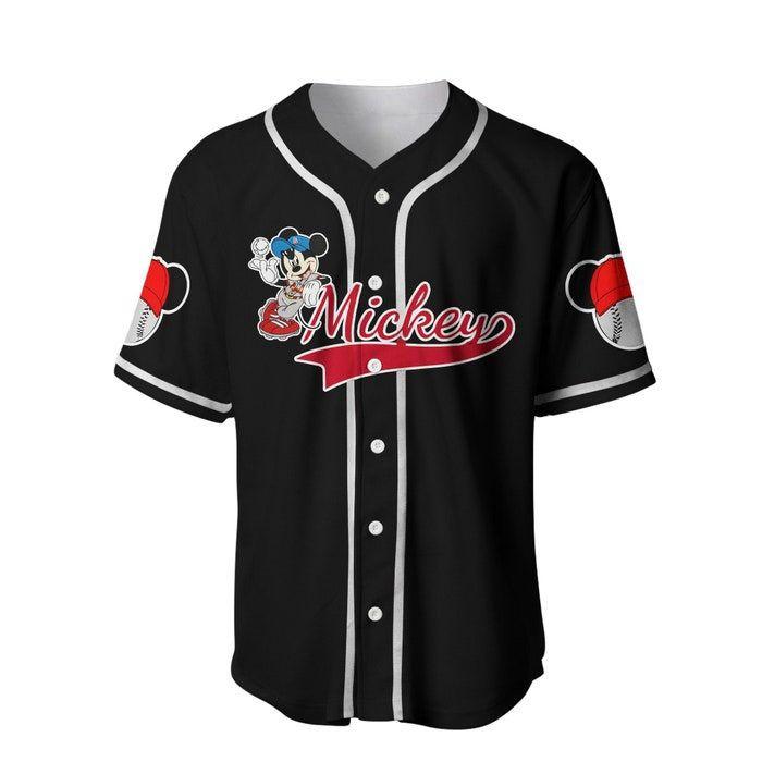 Mickey Mouse Red Black Baseball Jersey: Custom Disney Cartoons Gift for Men - Casual Cute & Unique Outfit for Dad Information