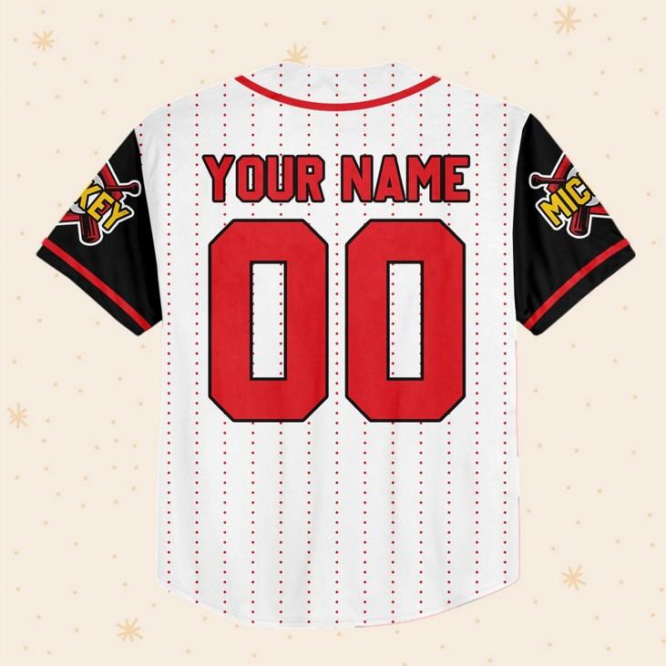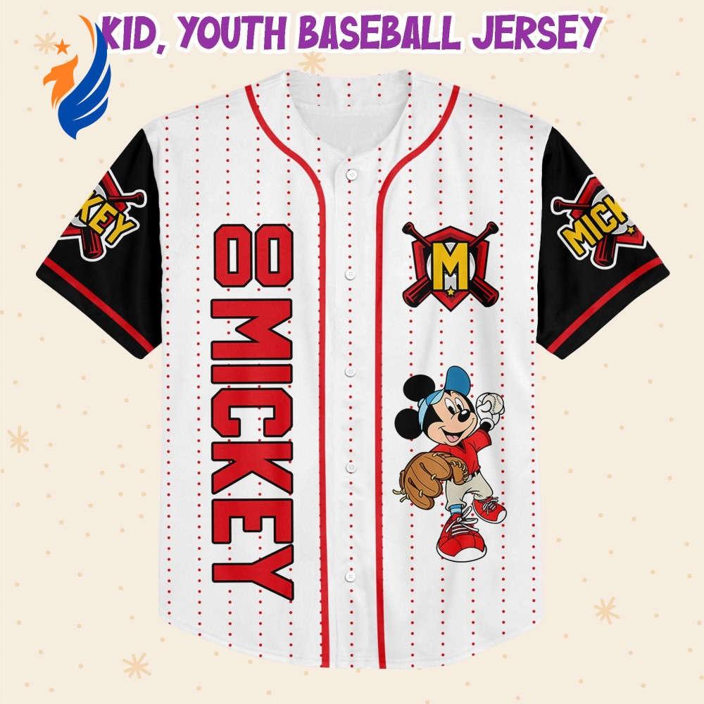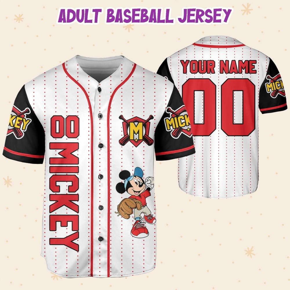 Custom Disney Mickey Baseball Jersey: Play in Style with Personalized Red & White Design Information