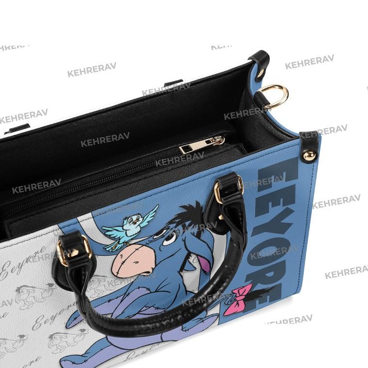 Introducing our exquisite Winnie The Pooh Eeyore Leather Bag Handbag, perfect for all Eeyore lovers. This custom-made, handmade bag is designed exclusively for women who appreciate fine craftsmanship and timeless elegance. Made from genuine leather, this bag exudes luxury and durability. Its spacious interior allows you to carry all your essentials effortlessly, while the sturdy leather handles ensure comfort and convenience. With its detailed Eeyore design, this bag is a true statement piece that will elevate any outfit. Whether you're heading to work, a social event, or a casual day out, this Eeyore Women Bag Purse is the perfect companion. Show off your love for Eeyore in style and make a lasting impression wherever you go. Don't miss out on this unique opportunity to own a one-of-akind, limited edition Eeyore Lover's Handbag. Order yours today and experience the joy of owning a truly special piece that celebrates your love for Eeyore!