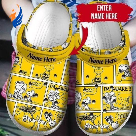 Introducing our Snoopy Funny Custom Name Crocs-Slippers Classic Clogs Shoes In Yellow, the perfect blend of comfort and style! These vibrant yellow clogs feature a playful Snoopy design with your custom name, adding a personal touch to your footwear collection.