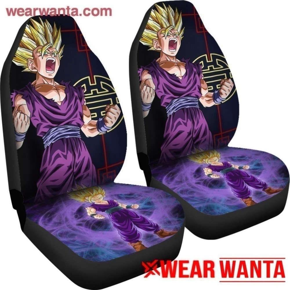 Featuring a stunning design inspired by Gohan's Super Saiyan transformation, these seat covers are a true statement piece. The vibrant colors and intricate patterns will catch the eyes of everyone around, making your car stand out from the crowd. But these seat covers are not just about aesthetics. Crafted from high-quality materials, they are durable and resistant to wear and tear. Whether you're driving for long hours or have little ones in the backseat, these covers will protect your seats from spills, stains, and scratches, keeping them in pristine condition.