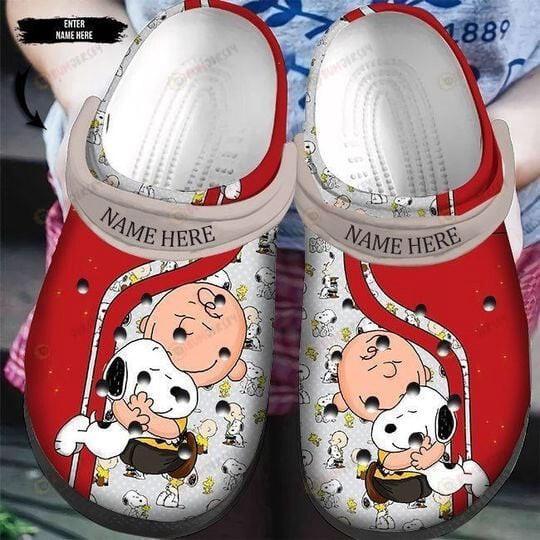 Information About Snoopy Chracters Custom Name Crocs-Slippers-Slippers Classic Clogs Shoes In Red And Gray