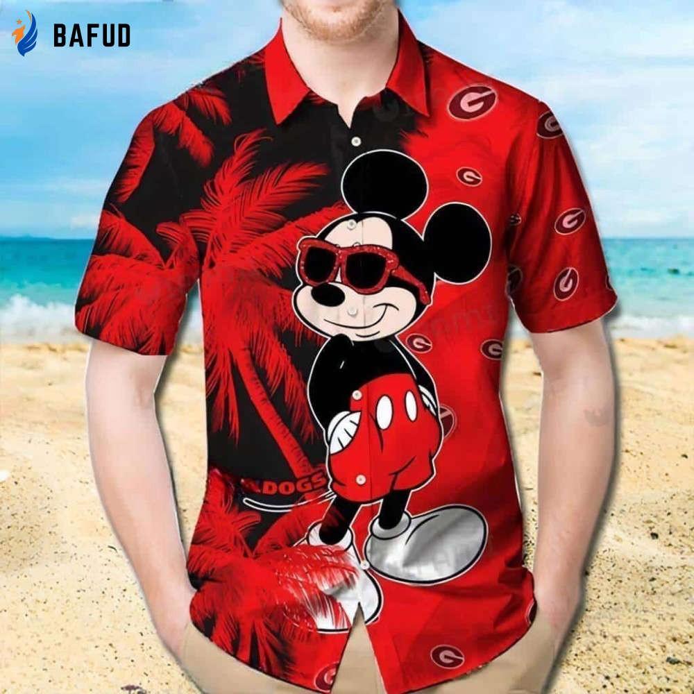 Red Aloha Mickey Georgia Bulldogs Uga Hawaiian ShirtVibrant and Stylish Apparel for Bulldogs Fans