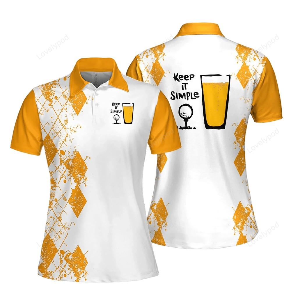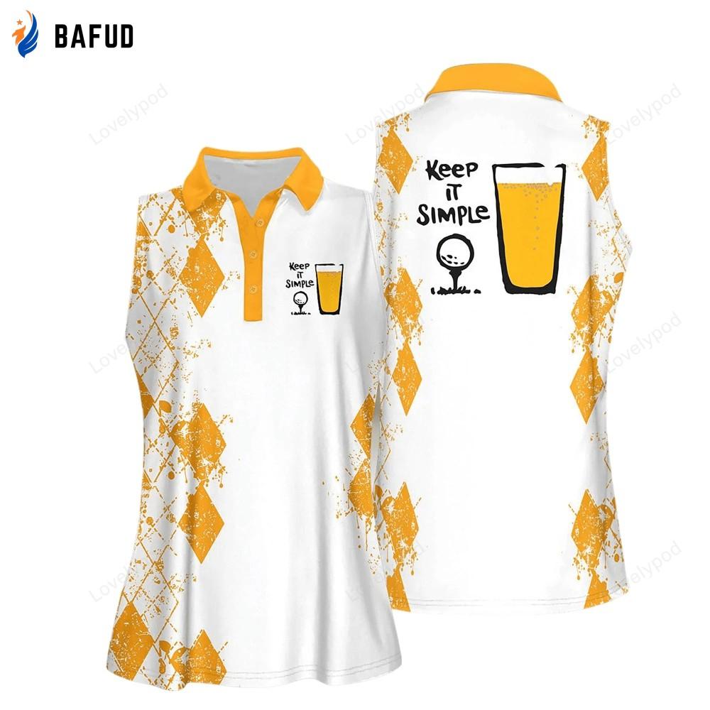 Our polo shirts are not just about style; they are packed with features to enhance your golfing experience. The moisturewicking technology keeps you dry and fresh, even on the hottest days on the course. The fabric also offers UV protection, shielding your skin from harmful sun rays. Whether you're a seasoned golfer or just starting out, our Keep It Simple Golf And Beer Women Short Sleeve Polo Shirt and Sleeveless Polo Shirt are a must-have addition to your golf wardrobe. They are versatile enough to be worn on and off the course, making them a great value for your money.