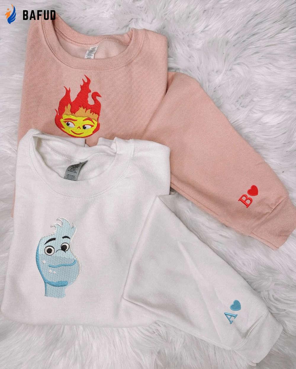 Elemental Ember & Wade Sweatshirts: Valentine & Cartoon Embroidered Shirts Trending Crewnecks & Couple Shirt