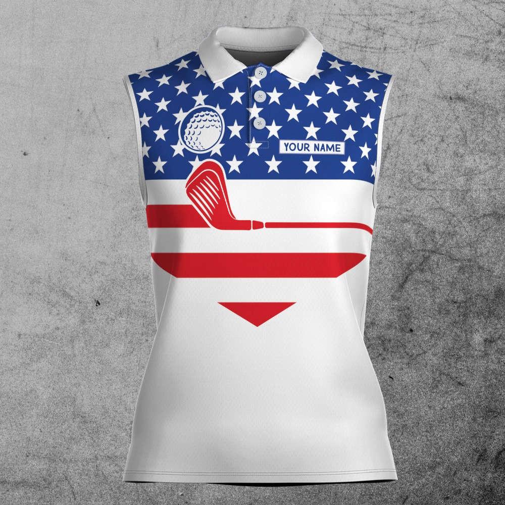 Custom Name 3D Women Sleeveless Polo, available in sizes XS4XL. This patriotic polo is designed with the modern female golfer in mind, combining style, comfort, and personalization.