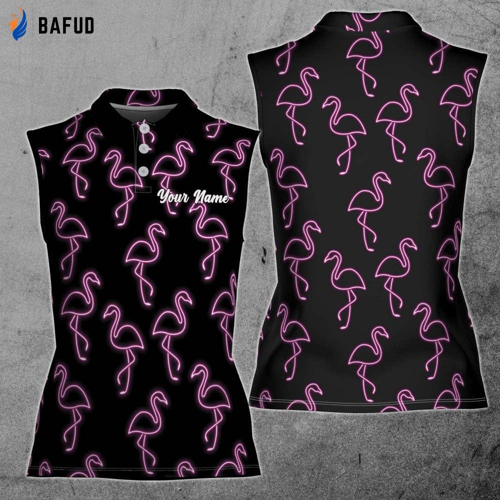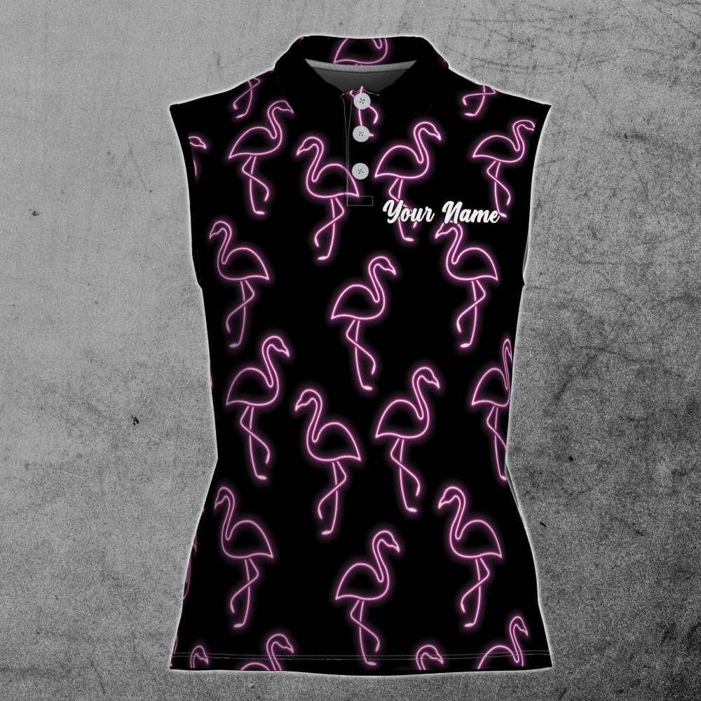 Elevate your style game and express your individuality with our Black Neon Pink Flamingos Pattern Custom Name Women Sleeveless Polo. Embrace the confidence and uniqueness that comes with wearing a piece that truly represents your personal style. Order yours today and experience the joy of owning a customized fashion statement.
