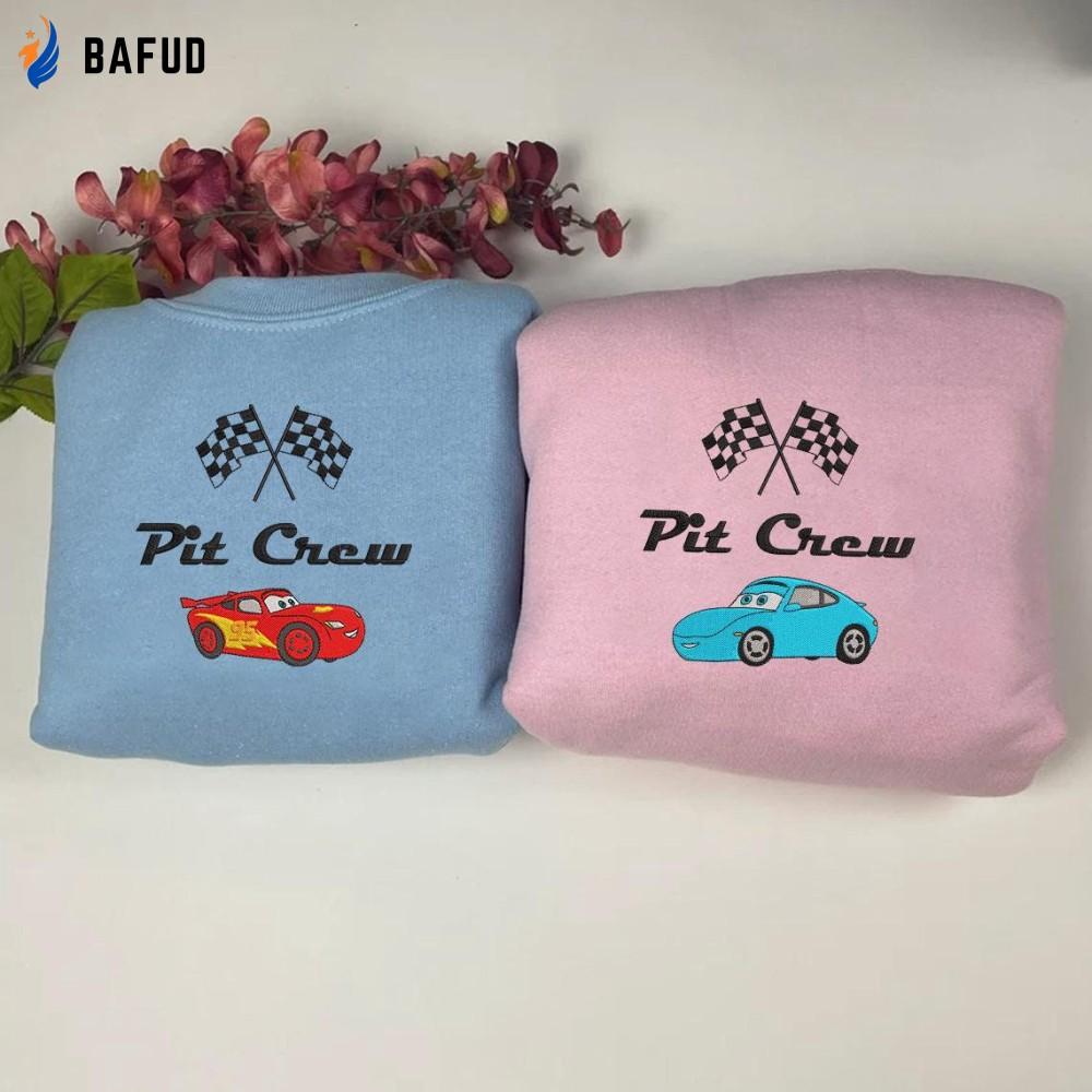 Introducing our Mcqueen and Sally Embroidered Sweatshirt, perfect for all Cars fanatics! This sweatshirt features a beautifully detailed embroidery of Mcqueen and Sally, capturing their adventurous spirit. Made from soft and cozy fabric, it guarantees comfort and warmth. The Pit Crew Mcqueen design adds a touch of excitement, making it a must-have for any Cars enthusiast. With a matching Couple Shirt option, you can now twin with your loved ones in style. This Cars Sweatshirt is not just a piece of clothing, but a statement of your love for the iconic cartoon characters. Ideal as a gift for him, it brings joy and nostalgia to every wearer. Grab this Cartoon Character Shirt now and experience the thrill of racing in the comfort of your own style. Own this unique and exclusive piece, and let the world know about your passion for Cars!