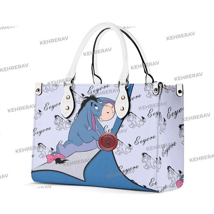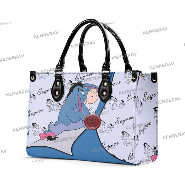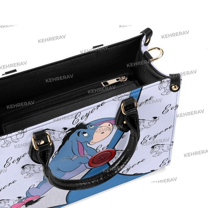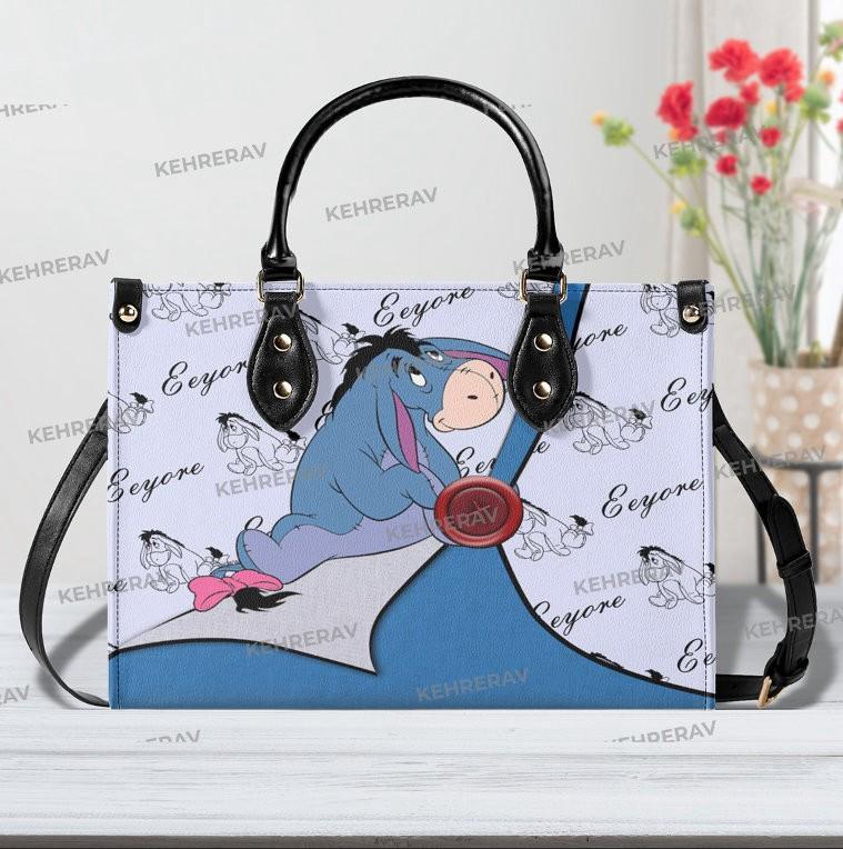 Introducing the Custom Name Winnie The Pooh Eeyore Leather Handbag, the ultimate accessory for Eeyore lovers. Handcrafted with love and attention to detail, this custom leather bag is a true masterpiece. With its spacious compartments and sturdy construction, it offers both style and functionality. The personalized touch of your name adds a unique element to make it truly yours. Made for women who appreciate quality and elegance, this handmade bag is a must-have in any wardrobe. Step out in confidence knowing you have a one-of-a-kind handbag that showcases your love for Eeyore. Elevate your style game and make a statement with the Eeyore Women Purses, designed for the modern woman. Get yours today and experience the joy of owning a beautifully crafted handbag that reflects your individuality. Due to the different monitor and light effects, the actual color of the item might be slightly different from the visual pictures. The leather bag. This item is a must-have for any woman, suitable from workday to the weekend outing. It is roomy and comfortable to carry, thanks to its shoulder straps and rolled leather top handles. Fashioned from supple-grained leather printed on both sides, creating a stylish contrast in color.