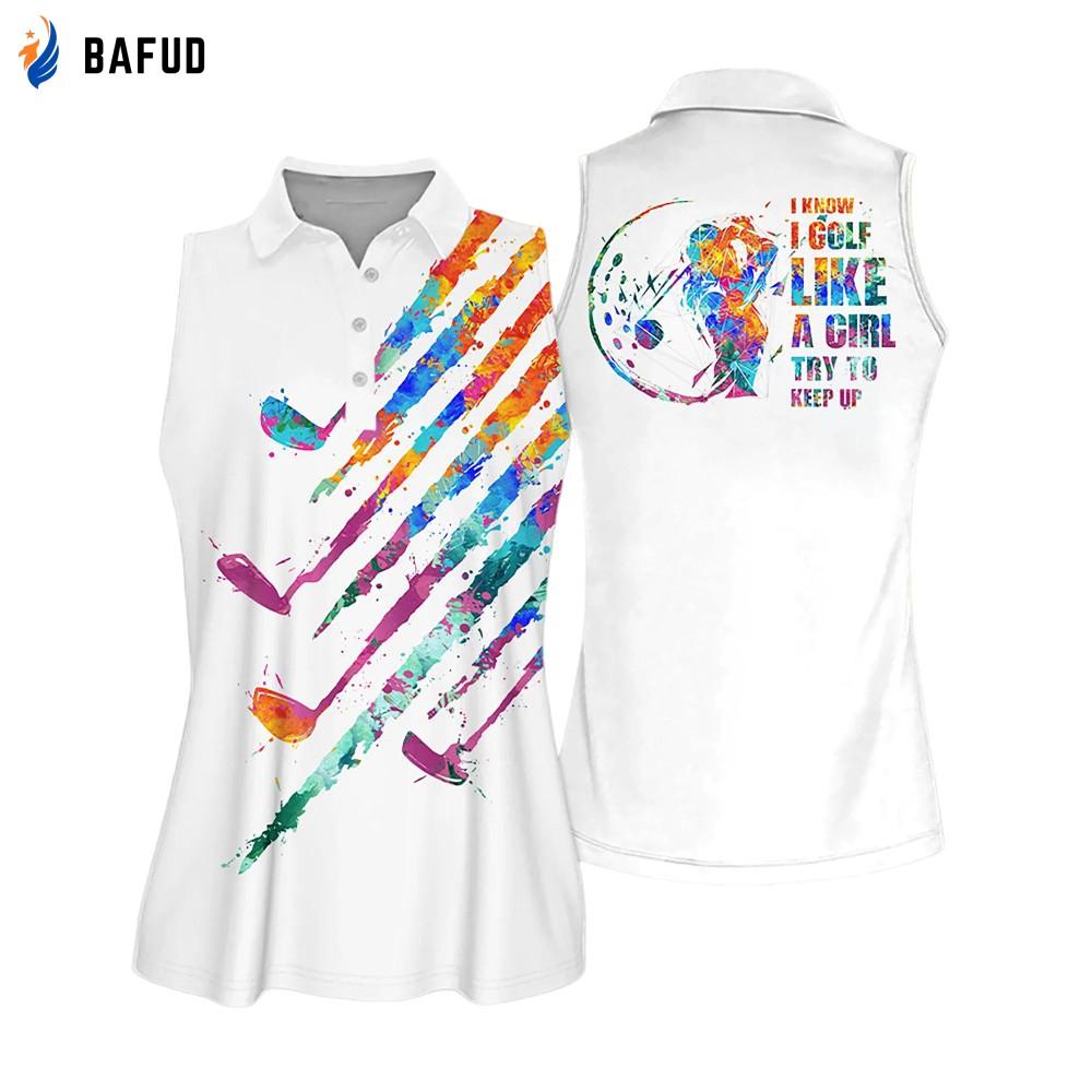 Golf Women Sleeveless Athleisure Polo Shirt, Watercolor, I Know I Golf Like A Girl Polo ShirtGift For Mother's Day, Golfers, Female