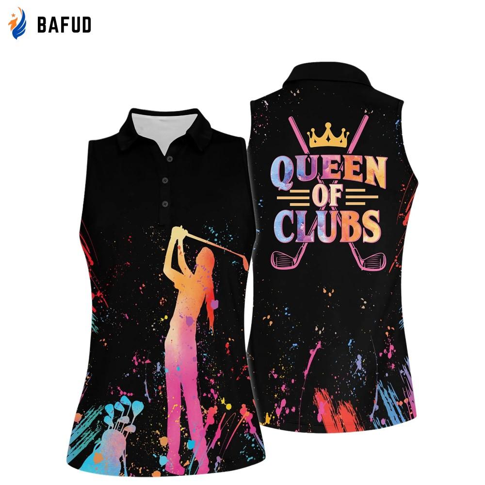 Golf Women Sleeveless Athleisure Polo Shirt, Queen of Clubs Sleeveless Polo Shirt For FemaleGift Sport For Mother's Day, Golfers