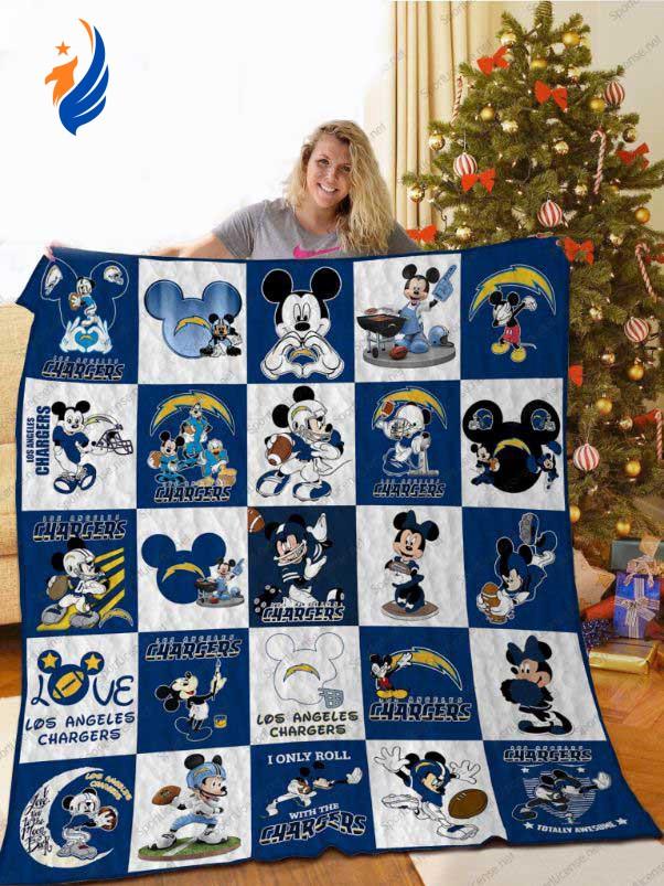 Introducing the Los Angeles Chargers Disney Mickey Mouse Fleece Quilt Blanket Gift! This charming blanket combines the iconic magic of Disney with the passion of Chargers football. Made from premium fleece, it offers cozy warmth and comfort for those chilly game nights or lazy Sundays at home. The vibrant design showcases your team pride and love for the beloved Mickey Mouse. Measuring X by Y inches, it's perfect for snuggling up alone or sharing with a loved one. This blanket not only adds a touch of Disney-inspired charm to your home decor but also makes an ideal gift for any Chargers fan. Experience the ultimate blend of fandom and fantasy with this unique blanket, which brings joy and team spirit to your living space. Don't miss out on this exclusive item that guarantees to be a conversation starter and cherished possession for years to come. Get yours today and celebrate your love for the Los Angeles Chargers and Disney in a whole new way!