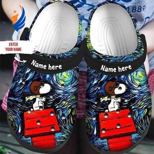 Introducing our Snoopy On The Roof Custom Name CrocsSlippers Classic Clogs Shoes! Step into comfort and style with these adorable clogs featuring everyone's favorite beagle, Snoopy. Personalize your pair with your name to make them truly one-of-a-kind. Made from high-quality materials, these shoes provide unmatched durability and support. The lightweight design ensures all-day comfort, while the non-slip sole offers stability on any surface. Perfect for indoor and outdoor wear, these clogs are easy to clean and maintain. With their iconic design and personalized touch, these Snoopy clogs make an ideal gift for any Peanuts fan. Embrace the joy of walking in style and make a statement with our Snoopy On The Roof Custom Name Crocs-Slippers Classic Clogs Shoes!