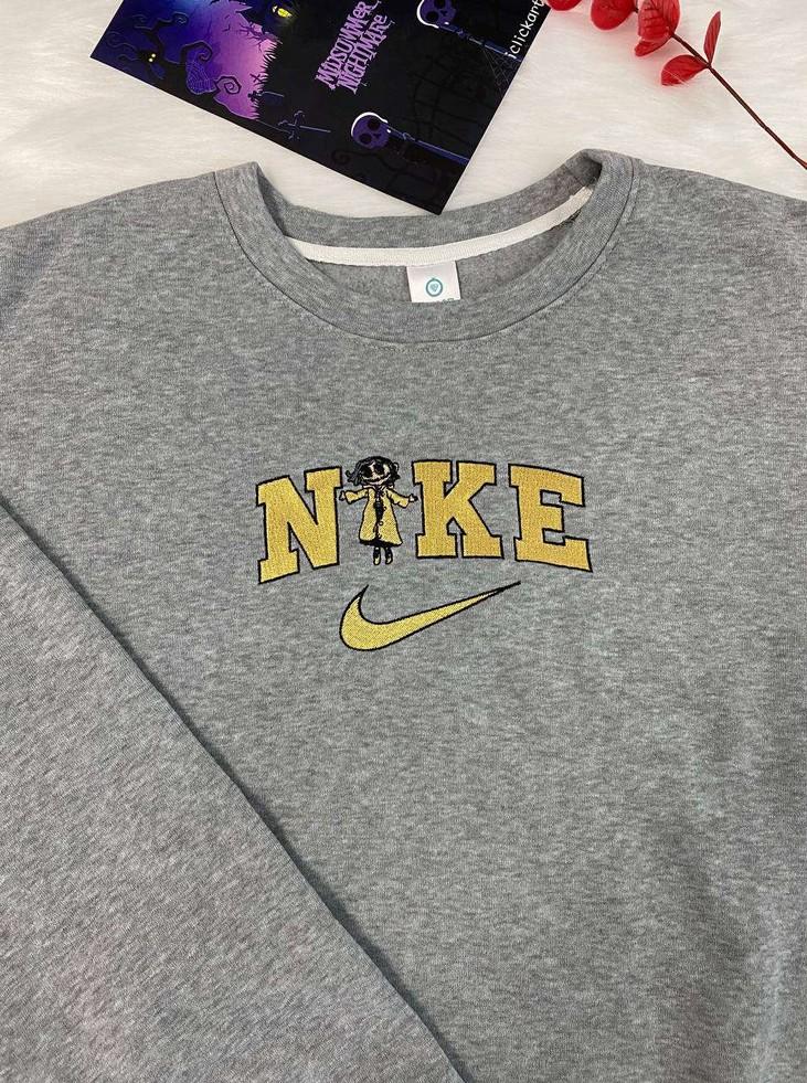 The Nike Coraline Embroidered Crewneck T-Shirt is a must-have for both men and women. Made with premium quality fabric, this sweatshirt offers unmatched comfort and durability. The unique embroidered design adds a touch of style to your outfit, making it perfect for any occasion. With its cozy fit and trendy look, this sweatshirt is a versatile addition to your wardrobe. Whether you're hitting the gym or lounging at home, this Nike sweatshirt will keep you looking effortlessly cool. Get ready to stand out from the crowd with this stylish and comfortable sweatshirt. Upgrade your wardrobe today!