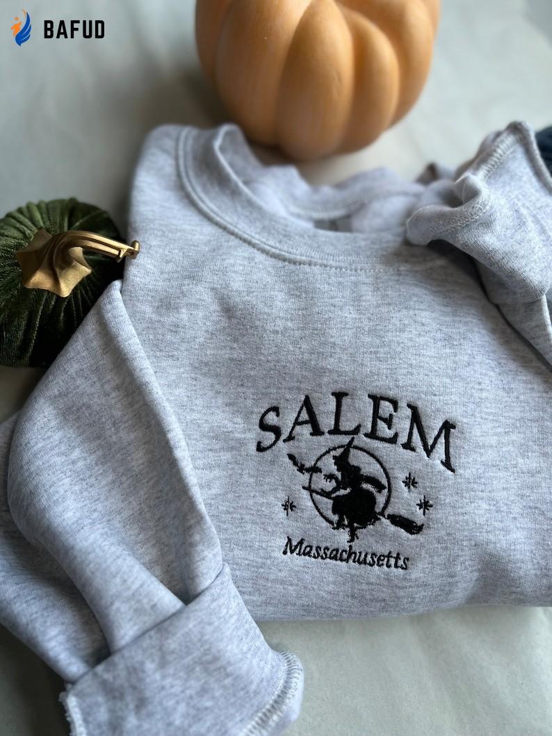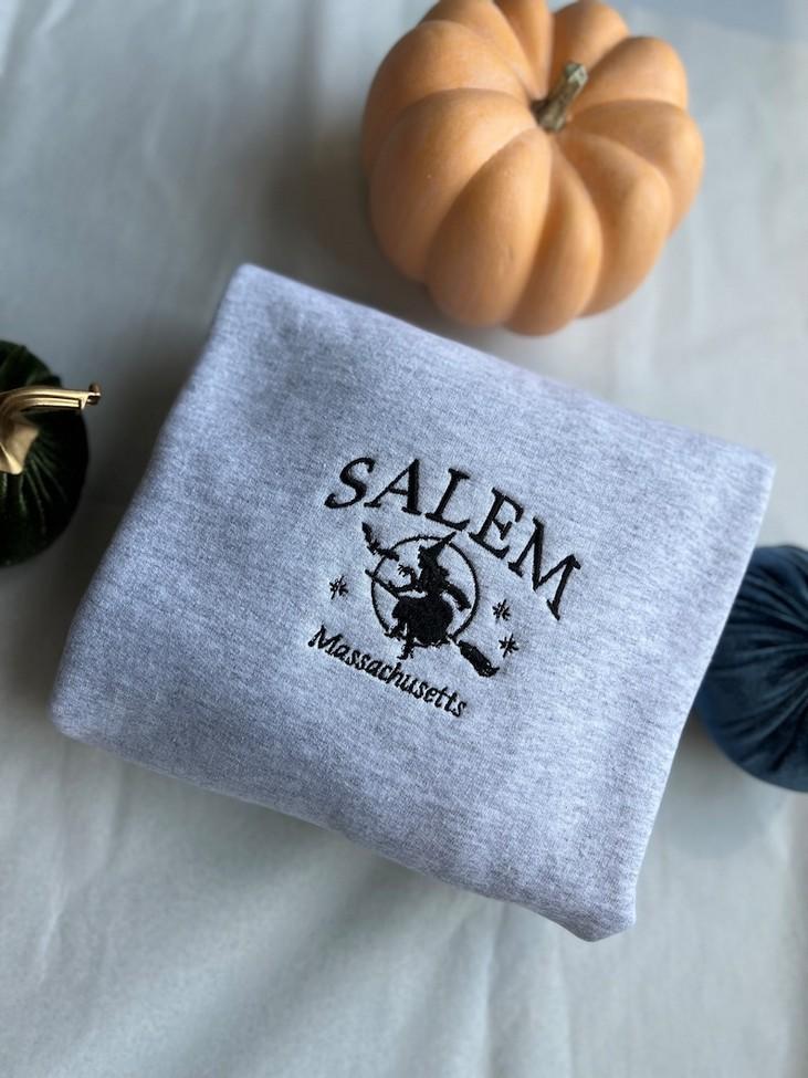The Salem Massachusetts Embroidered Crewneck Sweatshirt offers a stylish and cozy option for both men and women. Made with high-quality materials, this sweatshirt features a beautifully embroidered design showcasing the charm of Salem. With its comfortable fit and versatile style, it can be worn for any occasion. Whether you're a resident of Salem or simply a fan of this historic city, this sweatshirt allows you to show off your love and connection. Stay warm and fashionable with this must-have piece. Perfect as a souvenir or a gift, it adds value to your wardrobe while celebrating the rich heritage of Salem.