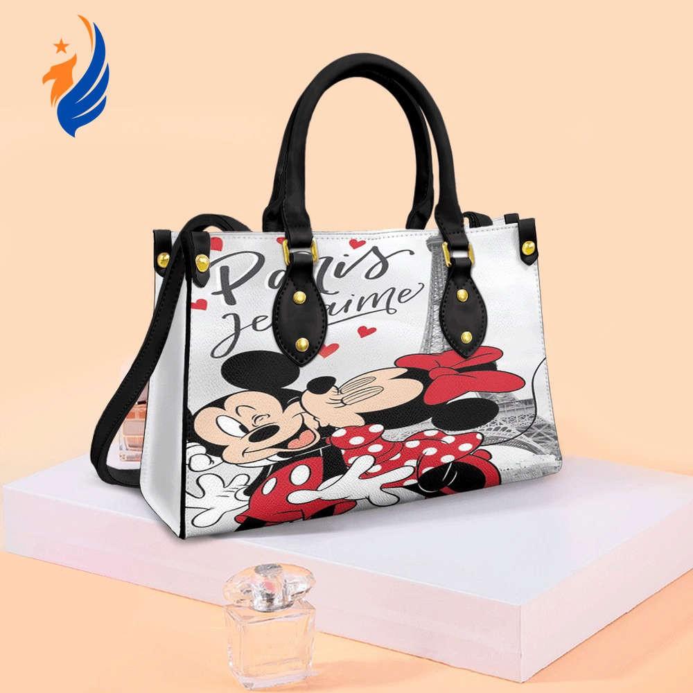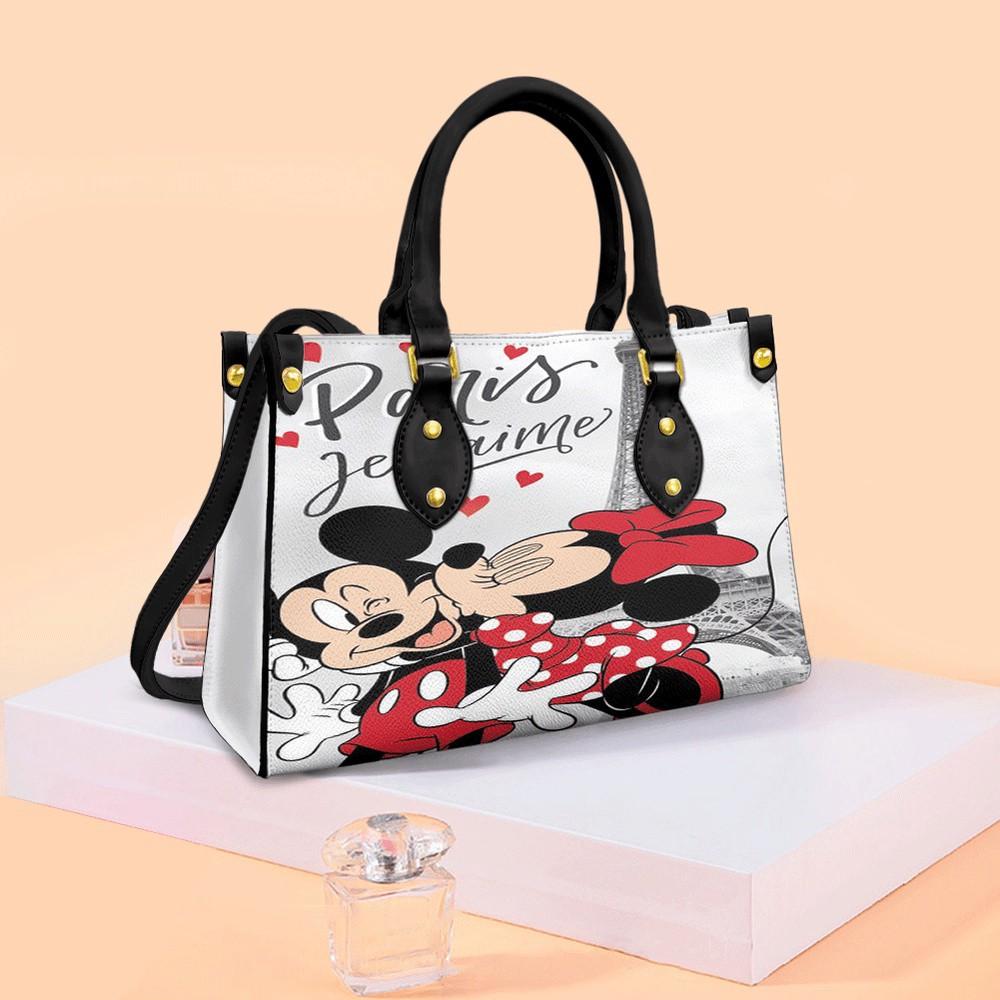 Introducing the Sweet Love Of Mickey Couple Kiss Paris Cartoon Disney Gift Lover Fashion Lady Handbag! Embrace your inner Disney lover with this adorable and fashionable handbag. Featuring a captivating design of Mickey and Minnie Mouse sharing a romantic kiss in front of the iconic Eiffel Tower in Paris, this handbag is a perfect gift for any Disney enthusiast. Made with high-quality materials, it offers durability and style, making it suitable for daily use or special occasions. The spacious interior allows you to carry all your essentials conveniently, while the sturdy handles ensure comfortable carrying. This handbag not only adds a touch of Disney magic to your outfit but also showcases your love for the iconic characters. Stand out from the crowd with this unique and delightful accessory, and let your love for Mickey and Minnie shine. Get your Sweet Love Of Mickey Couple Kiss Paris Cartoon Disney Gift Lover Fashion Lady Handbag now and make a fashion statement that's both charming and timeless!