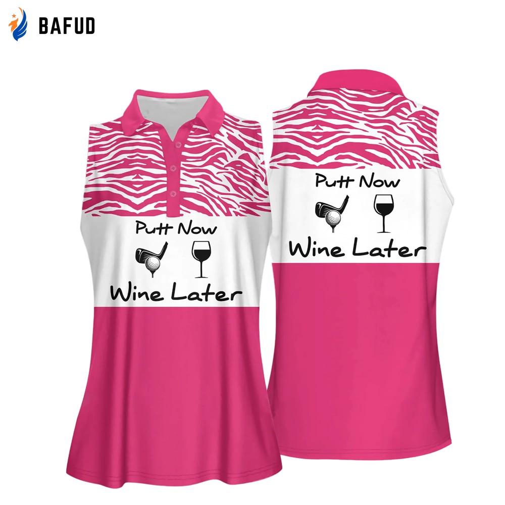 Golf And Wine Women Sleeveless Athleisure Polo Shirt, Putt Now Wine Later, Pink Polo Shirt - Gift For Mother's Day, Golfers, Female, Golf Lover