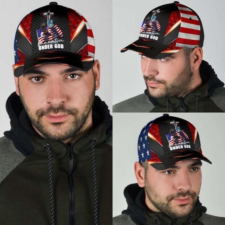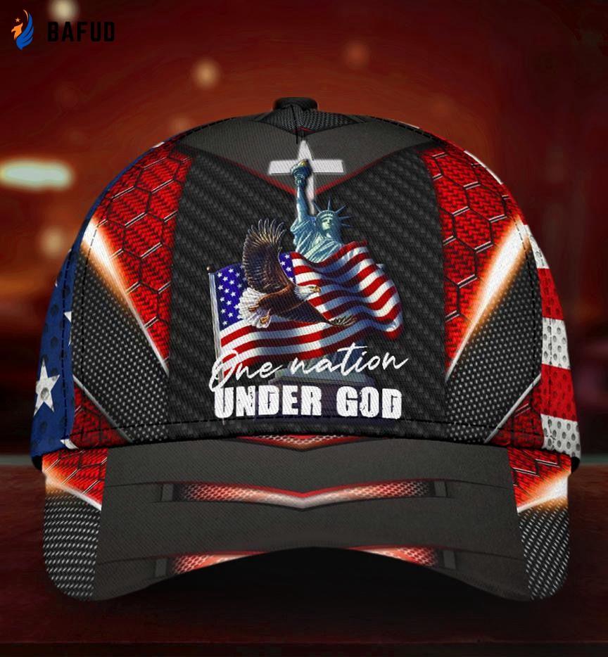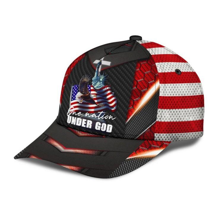 The One Nation Under God Classic Cap All Over Print is a symbol of patriotism and faith, designed for individuals who want to proudly display their love for their country and their belief in God. Made with high-quality materials, this cap offers both style and comfort.
