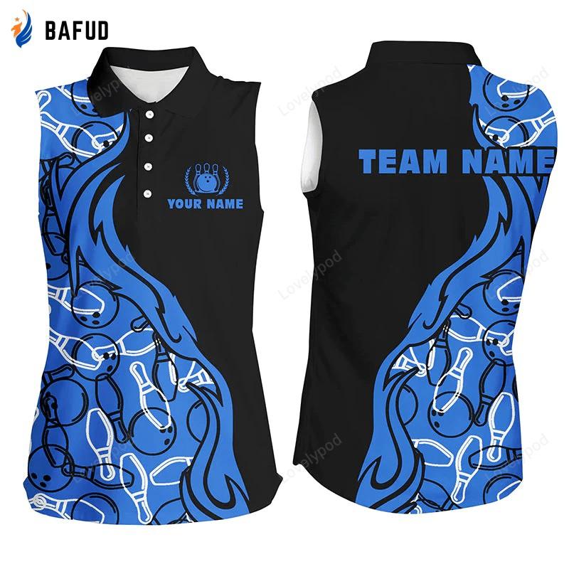 Introducing our Black Blue Pattern Bowling Sleeveless Polo Shirts for Women, the perfect custom team bowling jerseys for girls! These stylish and comfortable shirts are designed to enhance your bowling experience and make you stand out on the lanes.