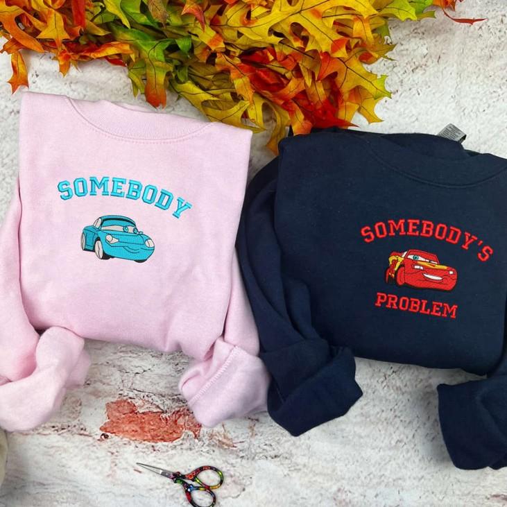 Introducing the Mcqueen Sally Somebody- Somebody's Problem Embroidered Sweatshirt, a must-have addition to your wardrobe! This Cartoon Sweatshirt is designed with love and care, perfect for couples looking to showcase their unique bond. The Mother's Day Gift ESH119-120 is a delightful surprise, guaranteed to make any mom feel special. The intricate embroidery adds a touch of elegance, while the cozy crewneck provides ultimate comfort. With its trendy design and high-quality materials, this sweatshirt offers both style and durability. Show off your individuality and spread positivity with this one-of-a-kind piece. Get yours now and become the envy of your friends!