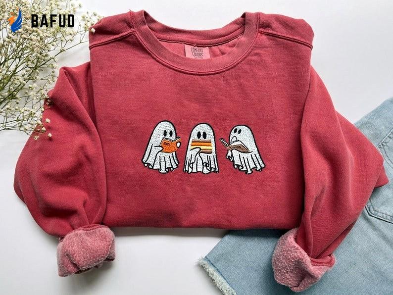 Ghost Book Sweatshirt Embroidered Crewneck T-Shirt, Sweatshirt for Men Women, Gift for Men Women