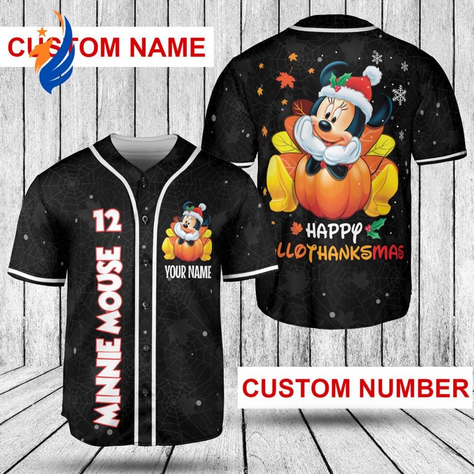 Custom Mickey Mouse Happy Hallothanksmas Baseball Jersey Shirt - Unique Personalized