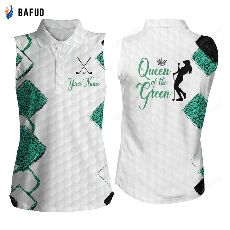Queen of the green custom funny white and green leopard golf shirt BUY