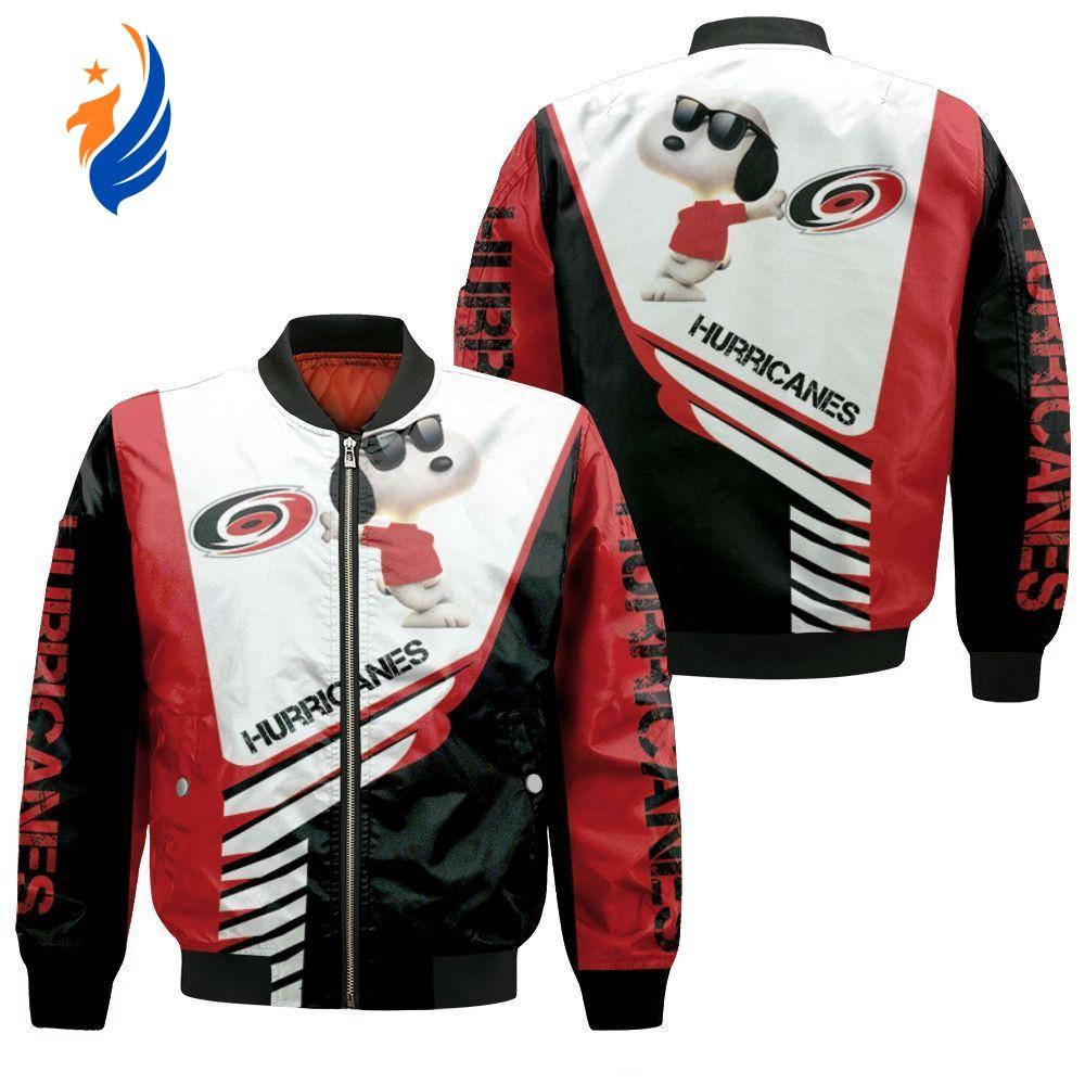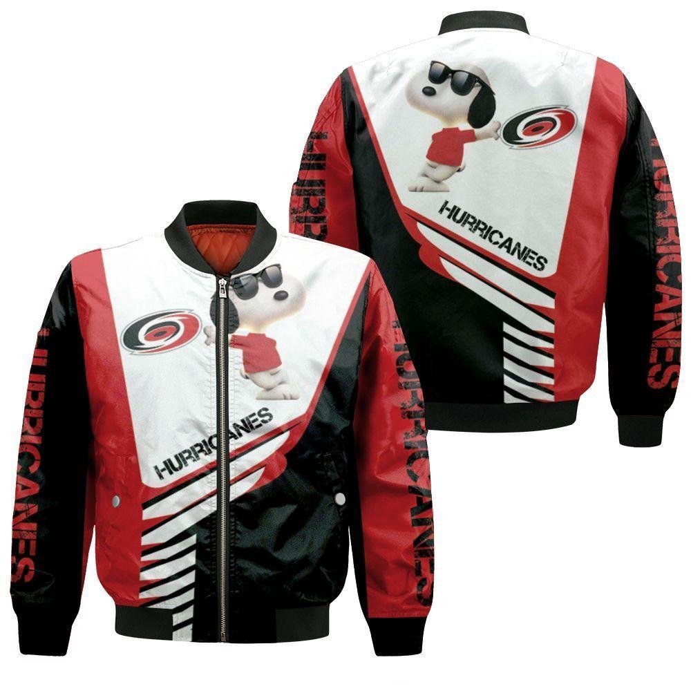 Introducing the Carolina Hurricanes Snoopy For Fans Bomber Jacket, the perfect gift for both men and women who are diehard fans of the team! Made with premium materials, this stylish jacket features the iconic Snoopy design, showcasing your love for the Hurricanes in a unique and fashionable way. With its comfortable fit and durable construction, it provides the ultimate warmth and protection during those chilly game nights. Its sleek design and vibrant colors make it a standout piece, allowing you to represent your favorite team with pride. Whether you're cheering from the stands or heading out for a casual outing, this bomber jacket is a must-have addition to any fan's wardrobe. Show your support for the Carolina Hurricanes and make a bold statement with this exclusive Snoopy Bomber Jacket!
