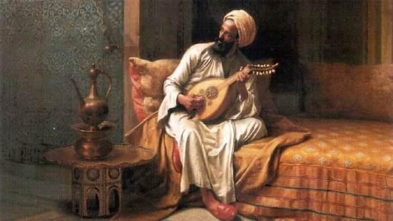 Ziryab fut l’élève du célèbre musicien Ishaq al-Mawsili, qu’il finit par surpasser en talent et en créativité — ce qui suscita la jalousie de son maître. Lorsqu’il eut l’occasion de chanter devant le calife Haroun al-Rachid, il impressionna l’assistance par son jeu unique sur un luth qu’il avait lui-même perfectionné, en remplaçant les cordes traditionnelles par des cordes de soie et d’intestins de lion, produisant ainsi un son d’une qualité inédite.