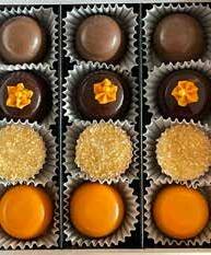 Marias vackra praliner går att köpa i hennes chokladbutik. Hon säljer även på olika marknader och mässor.