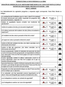 The site visit is contrasted with the construction documentation and time schedules generated for the project. Below, an example of the checklist used.