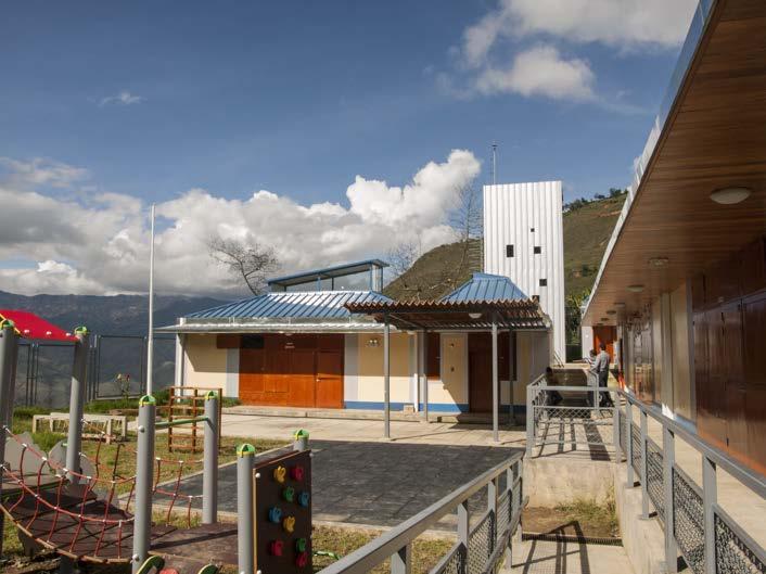 Huanuco has a rough topography comprising parts of the Sierra and the High Jungle regions., some of the locations were very steep and that was a major challenge, di erent options with di erent ways to approach to those locations with the “same school” were proposed.